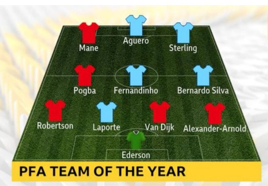 Kompletirano je 35. kolo Premijer lige , što je sasvim dovoljno da se proglase najbolji igrači u ovoj sezoni. Kako su Mančester Siti i Liverpul daleko naivise pokazali ove sezone, očekivano je bilo da imaju i najviše igrača u idealnih 11.