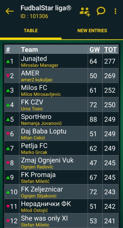 Pobednik je menadžer tima Junajted , Miroslav Menager koji osvojio 277 bodova.