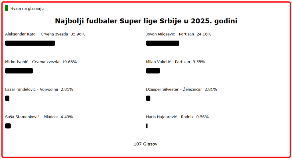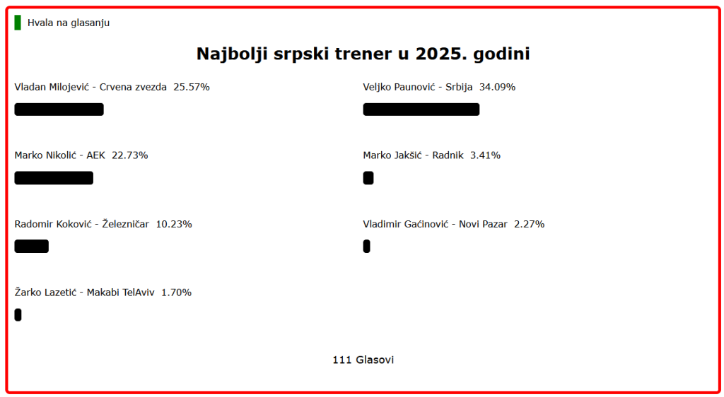 Za najbolje smo izabrali Nikolu Milenkovića , Aleksandra Kataija i Marka Nikolića. Zanimljivo je da su se vaša i naša mišljenja gotovo poklopila i jedini smo drugačije glasali u kategoriji najbolje trenera Srbije.